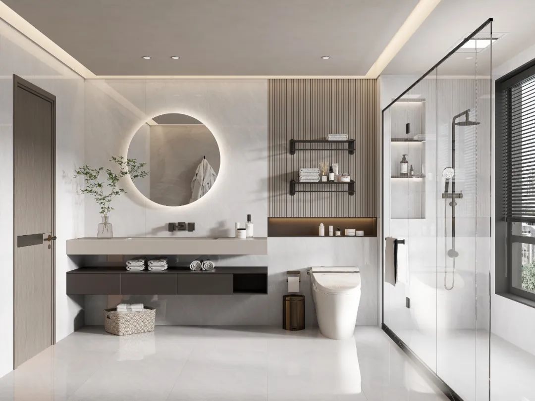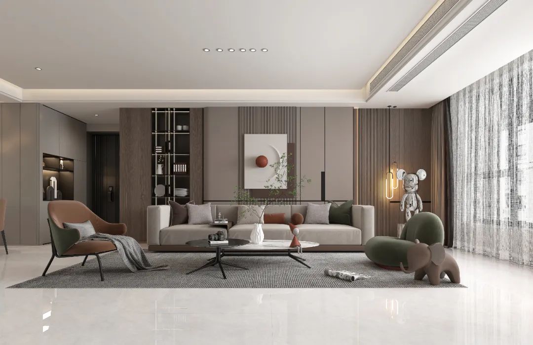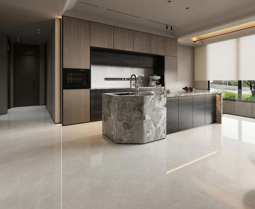 中性灰色調中蘊含細膩的天然紋理,展現出沉穩內斂的氣質。兩種規格的靈活搭配,讓空間層次分明又渾然一體。