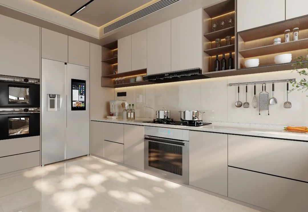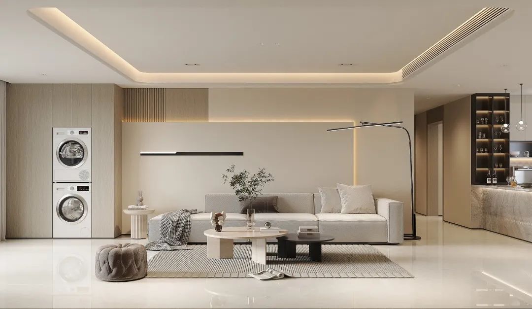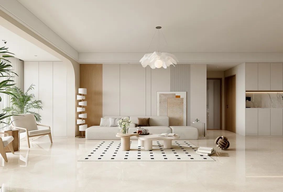純凈如玉的底色上,細膩的紋理似行云流水,營造出輕盈通透的視覺效果。搭配密縫工藝,讓空間充滿流動的韻律感,適合打造現代簡約的明亮空間。