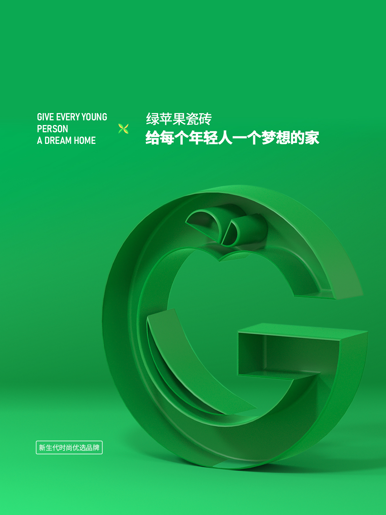 新生代品牌瓷磚綠蘋果瓷磚GREEN APPLE 始于2010年,糅合潮流元素與多變格調(diào),優(yōu)選品質(zhì)好物,用顛覆創(chuàng)新的思維去組合夢想空間,打造時(shí)尚、激情、富有情感互動的理想家,其中張揚(yáng)著年輕、奮斗和快樂的DNA。產(chǎn)品集合國際潮流色彩,以“給每個年輕人一個夢想的家”為品牌使命,傳遞正青春的簡單理念和細(xì)膩入微的質(zhì)感精神。